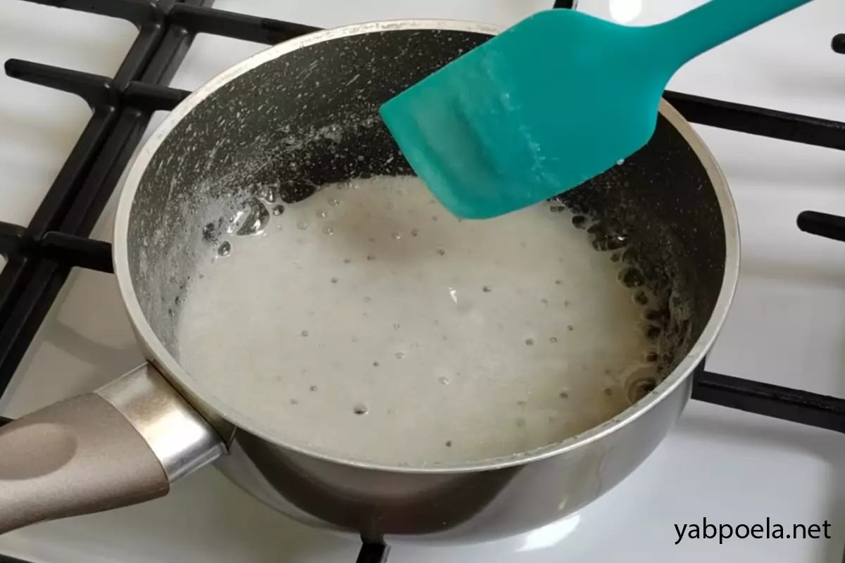 Поставте сотейник на плиту на середній вогонь. Від плити не відходьте ні на крок! Постійно помішуйте масу, щоб вона не пригоріла. Сироп кип’ятити не потрібно — щойно маса закипіла і з’явилися активні бульбашки, одразу знімайте з вогню.