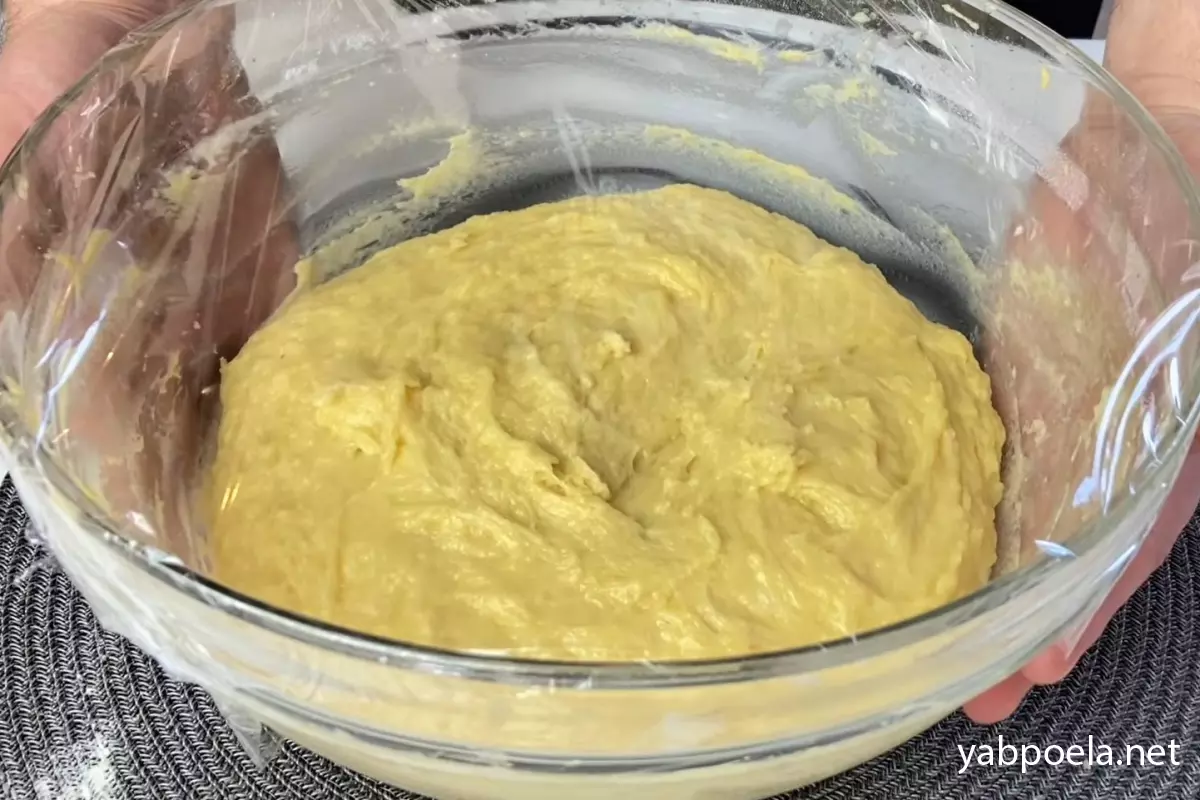 Накрийте миску з опарою харчовою плівкою і поставте в тепле місце приблизно на 30 хвилин.