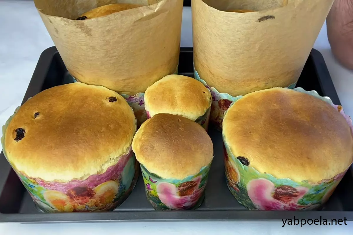 Відправте підняті паски в заздалегідь розігріту до 180°C духовку. Маленькі паски випікаються близько 25 хвилин, форми більші (13 см) — близько 30 хвилин. Обов’язково перевіряйте готовність дерев’яною шпажкою: вона повинна виходити з центру абсолютно сухою.