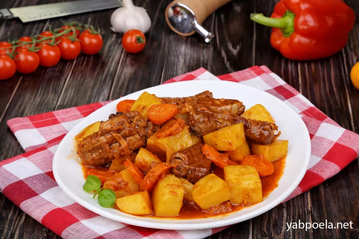 - Правильна нарізка: Картопля і м’ясо повинні бути нарізані співмірно. Якщо м’ясо готується швидко (наприклад, куряче філе), картоплю краще нарізати дрібніше, інакше вона залишиться сируватою.