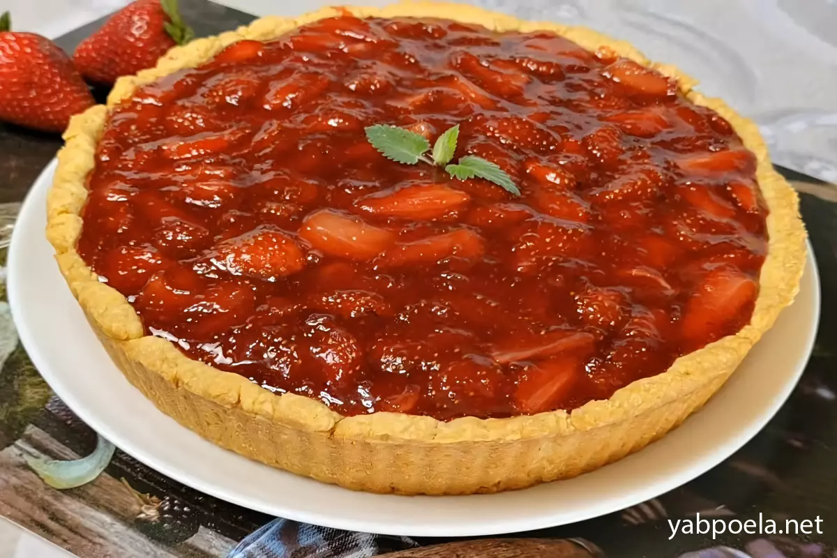 Цей чудовий пиріг — справжній вибух смаку й барв! Ідеальне поєднання текстур: хрустка основа з ніжного пісочного тіста, ніжна сирно-сметанна начинка (схожа на крем) і розкішна шапка з ароматної полуниці, томленої в карамелі. Готується цей десерт зовсім не складно, тісто виходить дуже слухняним, а результат виглядає так, ніби ви купили тарт у дорогій кондитерській. Завдяки технології попереднього уварювання ягідного шару, цей пиріг можна готувати цілий рік, використовуючи як свіжу, так і заморожену полуницю.
