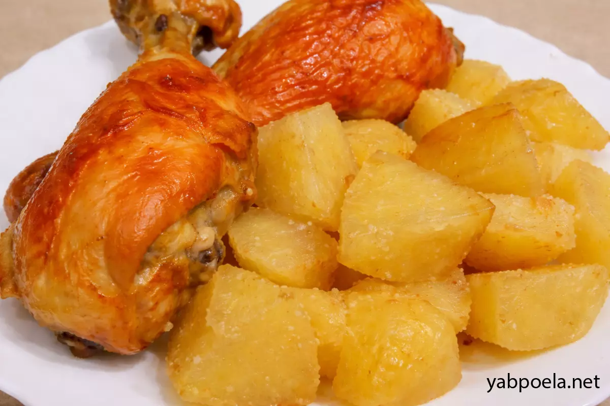 Курячі ніжки з картоплею у духовці готові. Смачного!