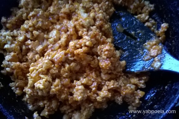Далі додайте томатний соус або кетчуп. Все перемішайте.