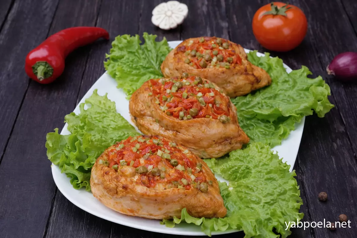 Куряче м'ясо з овочами в духовці – це простий та оригінальний рецепт. Куряча грудка виходить дуже смачною, в ароматному соусі, з соковитою начинкою. Це гарна та корисна страва. Рекомендую приготувати, якщо звичайне філе набридло, і хочеться чогось смачного та цікавого – філе запечене з начинкою з овочів та сиру вам обов'язково сподобається!