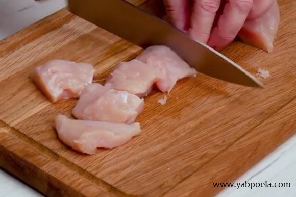 Наріжте куряче філе невеликими шматочками.