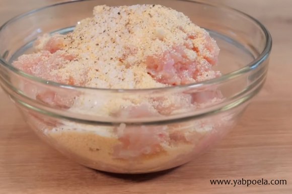 Фарш змішайте з манкою, подрібненою цибулею, сіллю. Ретельно перемішаний фарш та поки відставте убік, нехай манка набухає.