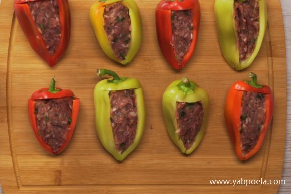 Перець за таким рецептом трохи надрізається, потім його зручно готувати і їсти, а ще страва красиво виглядає.